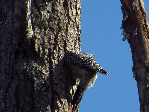The vulture was taken good lighting, focus and shutter speed. However, I had a hard time keeping the camera steady while zoomed in at a long range. As a result, all that was captured was the vulture's wing. Image two, yes, the same woodpecker, was difficult because